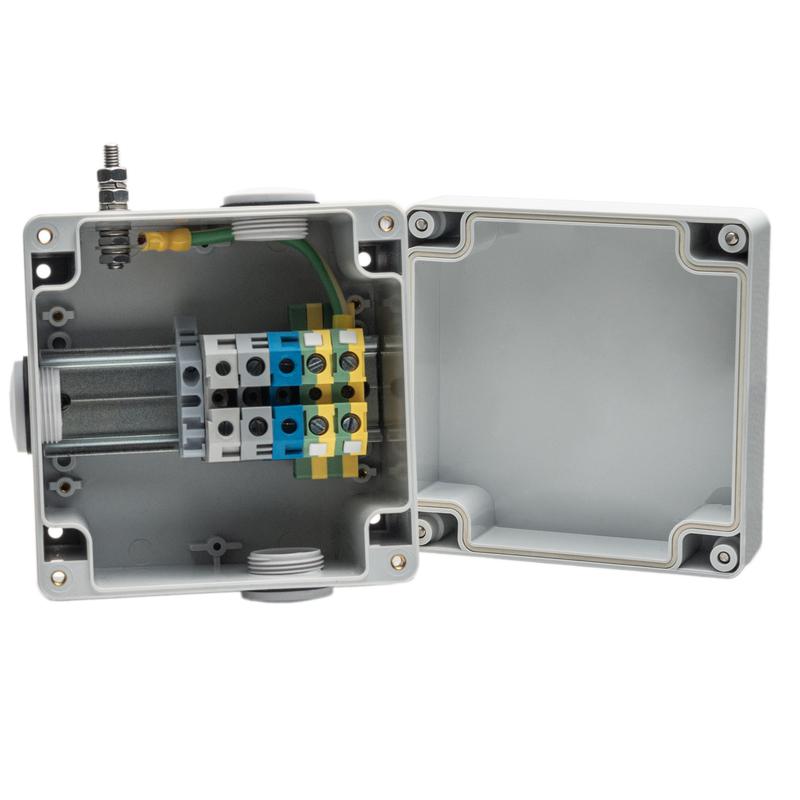 Распределительная коробка используется для обеспечения высокой степени защиты IP в местах соединения проводов. Корпус изготовлен из ударопрочного поликорбаната с УФ защитой, не поддерживающего горение.
