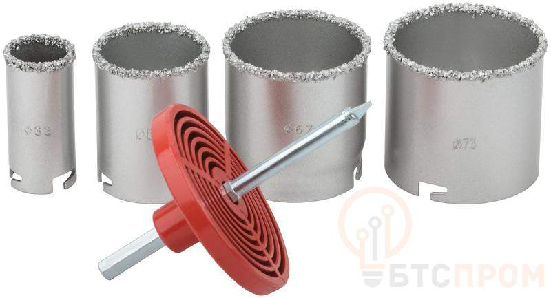 Набор. Для вырезания отверстий в кафеле, мягком кирпиче, пористом бетоне. Глубина пропила 55 мм. Материал: инструментальная сталь, режущая кромка из твердосплавного карбид-вольфрамового сплава ВК8. Упаковка: блистер.