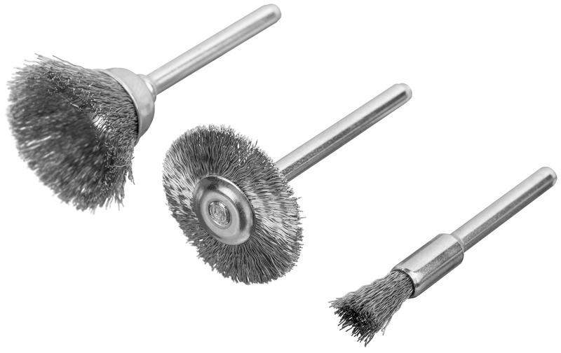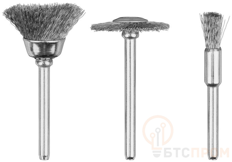 Для гравировальной машинки. В наборе 3 шт. Предназначена для удаления ржавчины и шлифования. Dхвостовика=3,1 мм. Материал: проволока из нержавеющей стали. Упаковка: блистер.