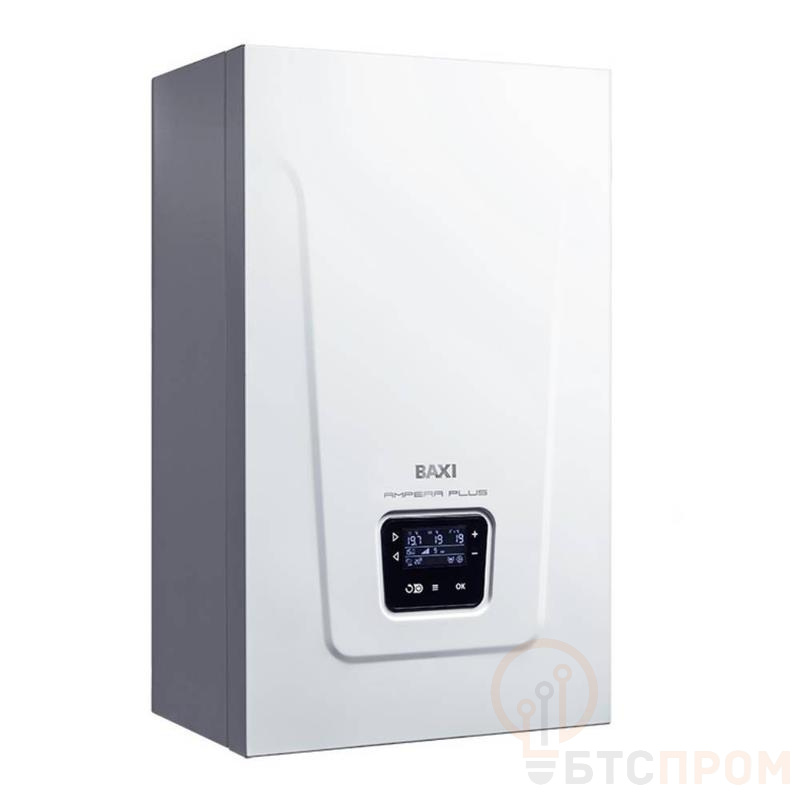 "Электрический котел BAXI AMPERA Plus органично дополнил уже ставшей популярной линейку электрических котлов BAXI AMPERA. Данный котел обеспечит комфортное и безопасное отопление в помещении. Основные преимущества электрического котла BAXI AMPERA Plus: Улучшенная модуляция мощности. Для моделей 6 кВт – 3 ступени, моделей от 9 до 24 кВт – 6 ступеней, моделей от 30 до 36 кВт – 9 ступеней. Что позволяет более точно регулировать мощность котла, а как следствие экономить на затратах электроэнергии. Интеллектуальный датчик давления позволяет точнее контролировать и поддерживать давление в системе отопления. Что значительно повышает надежность и долговечность котла. Умные мини-котельные, которые включают в себя все необходимые для работы системы отопления в целом: насос, расширительный бак, группа безопасности и автоматика для управления котлом. Широкий диапазон мощностей: от 6 до 36 кВт позволяет подобрать оптимальный вариант котла для любого типа помещения. Управление по протоколу OpenTherm, совместимого с системой удаленного управления BAXI Connect+, что значительно упрощает управление и обслуживание котла. Европейское качество. BAXI – известный европейский бренд, который давно зарекомендовал себя как на европейском, так и на российском рынках."