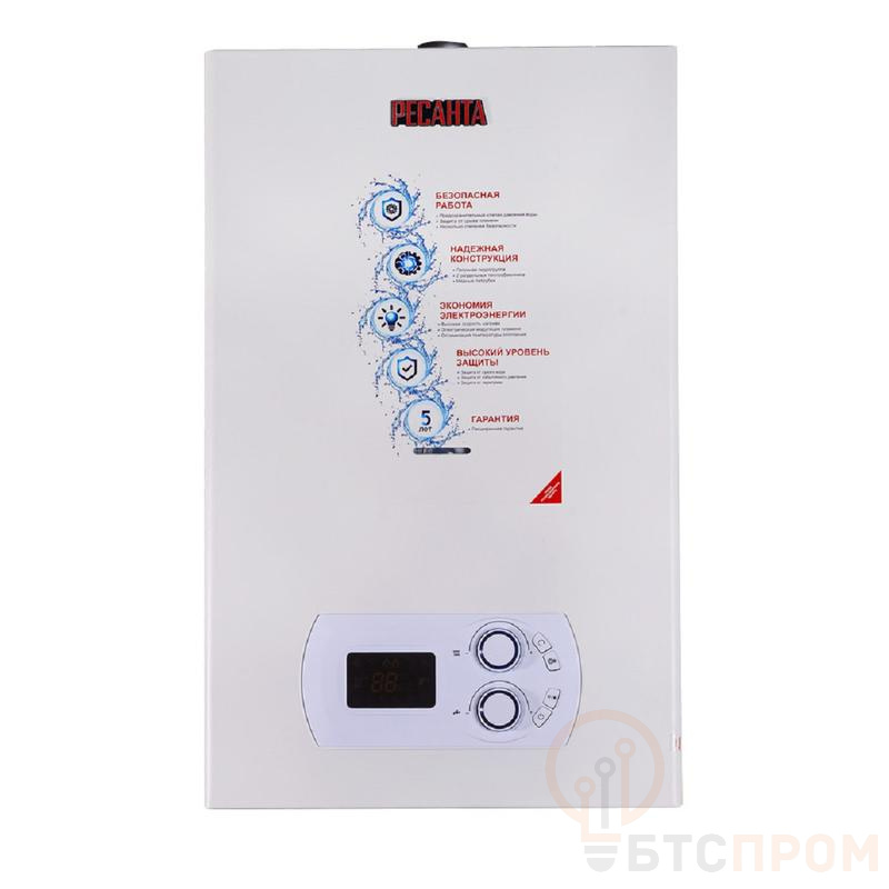 "Газовый настенный двухконтурный котел Ресанта ГК-20 предназначен для одновременного решения двух важных задач: подогрева теплоносителя в системе отопления и обеспечения горячего водоснабжения для бытовых нужд. Благодаря такой многофункциональности устройство становится идеальным выбором для создания комфортных условий проживания. Мощность котла варьируется в диапазоне от 8 до 20 кВт, что позволяет эффективно отапливать помещения значительной площади. Точный контроль температуры теплоносителя в диапазоне от 30 до 80 °C обеспечивает оптимальную настройку микроклимата в помещении. Производительность горячего водоснабжения достигает 12 л/мин, что позволяет нескольким пользоваться горячей водой одновременно в нескольких точках водоразбора. Система водоснабжения адаптирована к различным условиям эксплуатации. Котел способен работать при минимальном напоре воды 2,5 л/мин и расходует не более 1,35 куб.м/ч природного газа. Важным преимуществом является возможность переключения между природным и сжиженным газом. Конструкция котла включает в себя первичный теплообменник изготовлен из меди, а вторичный — из нержавеющей стали, что гарантирует длительный срок службы и устойчивость к коррозии. Безопасность эксплуатации обеспечивается закрытой камерой сгорания с принудительным отводом продуктов сгорания через коаксиальный дымоход диаметром 60/100 мм. Стандартные подключения предусматривают диаметр ? дюйма для отопления и холодного водоснабжения, а для горячего водоснабжения используется подключение 1/2 дюйма. Степень защиты IPX4 позволяет устанавливать котел во влажных помещениях, таких как ванная комната, что существенно расширяет возможности его применения в различных зонах жилого пространства."