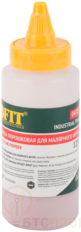 Краска порошковая FIT IT применяется для заправки разметочного шнура. Краска обеспечивает четкую разметку поверхностей. Герметичная туба не пропускают влагу, порошок остаётся сухим при любых условиях хранения. Крышку вытянутой, заострённой формы удобно применять для засыпки пигмента в инструмент.