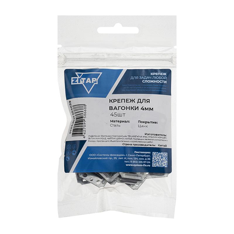 Крепеж для вагонки Tech-Krep/Zitar 104039 — это современное и удобное решение для быстрого и качественного монтажа вагонки, панелей и других облицовочных материалов. Изделие представляет собой металлический кляймер 4-го типа, предназначенный для надежной фиксации панелей толщиной до 4 мм.