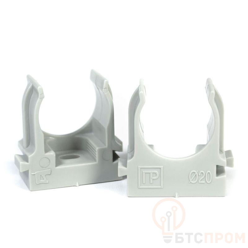 Держатель для труб (клипса) d20мм для прямого монтажа сер. в гофроящике Промрукав PR13.0453 фото в каталоге от BTSprom.by