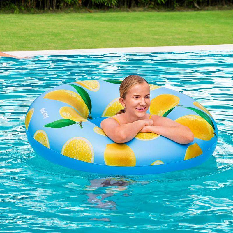 Круг для плавания Scentsational Lemon с запахом лимона понравится и детям, и взрослым! Особенность надувного круга Bestway 36229 - специальный экологически чистый ПВХ- материал с легким ароматом лимона. Ваш ребёнок получит массу положительных впечатлений, плавая на этом круге в бассейне или в море. Надувной круг достаточно большой, прекрасно подойдет для подростков и взрослых. На нём можно очень комфортно качаться на волнах и загорать. Размер: 119 см. Возраст: 12+ Характеристики: Тип Надувной круг Бренд Bestway Персонаж Лимон Цвет Голубой, желтый Минимальный возраст ребенка От 12 лет Пол ребенка Унисекс Диаметр, 119 см Макс. нагрузка, 80 кг Размер упаковки 19,8х4х19,8 см. Страна-изготовитель Китай