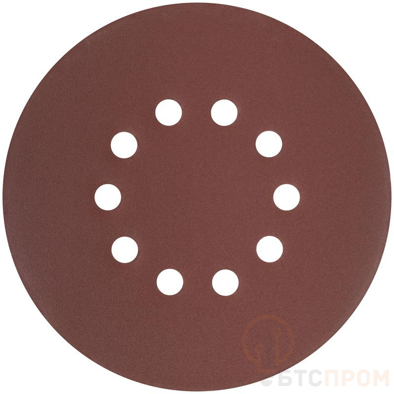 225 мм. Набор (5 шт.). На тканевой основе с липучкой, с 10 отверстиями. Используется со шлифмашиной для стен и потолков. Для сухого шлифования стен, потолков и полов внутри и снаружи различных помещений, финишного выравнивания сухих оштукатуренных и зашпаклеванных поверхностей, снятия тонких лакокрасочных покрытий и обоев. Материал: тканевая основа (х/б), алюминий-оксидный абразивный слой. Тип упаковки: картонный конверт.