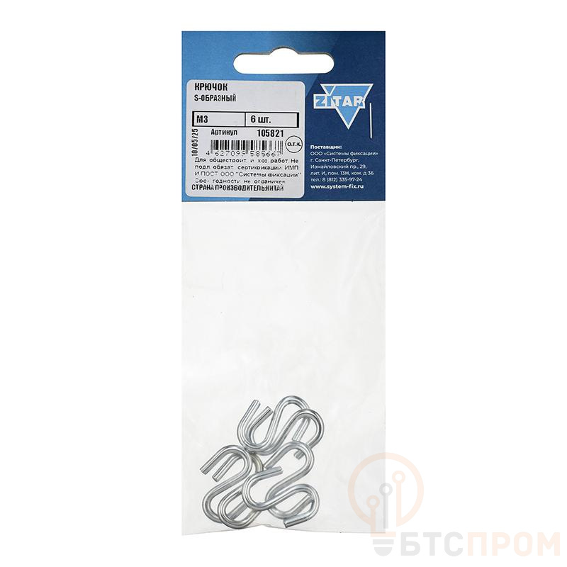 Крючок S-образный с резьбой М3 – это надежное и удобное крепежное изделие для создания подвесных систем и соединения элементов. Изготовлен из высококачественной углеродистой стали, что обеспечивает ему повышенную прочность и долговечность. Покрытие цинком надежно защищает от коррозии, позволяя использовать крюк как внутри помещений, так и снаружи.