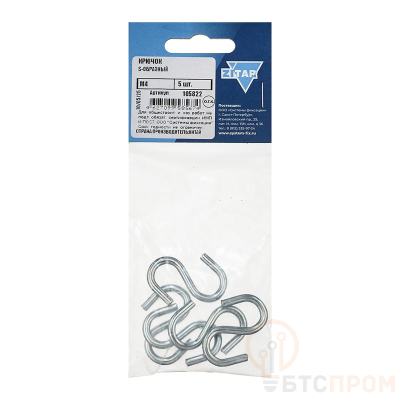 Крючок S-образный M5 от бренда Tech-Krep/Zitar – это надежное и универсальное крепежное изделие, предназначенное для быстрого и удобного соединения различных элементов. Изделие изготовлено из высококачественной оцинкованной стали, что обеспечивает ему повышенную прочность и коррозионную стойкость, продлевая срок службы.