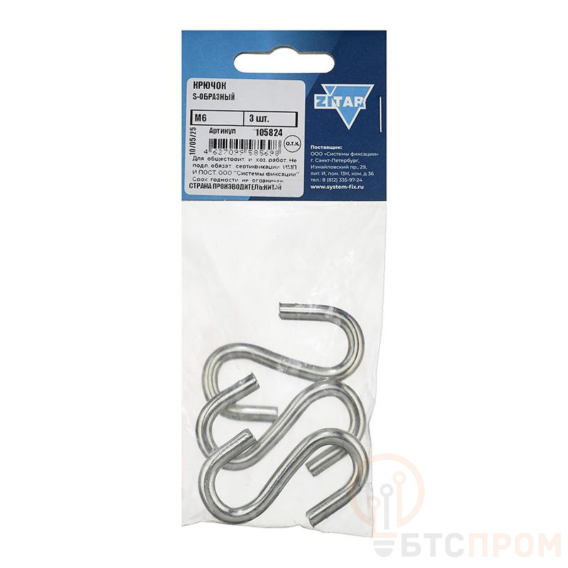 S-образный крюк M6 от бренда Tech-Krep/Zitar — это надежное и универсальное крепежное изделие, предназначенное для решения широкого спектра задач. Изделие изготовлено из высококачественной оцинкованной стали, что обеспечивает ему повышенную прочность и коррозионную стойкость.