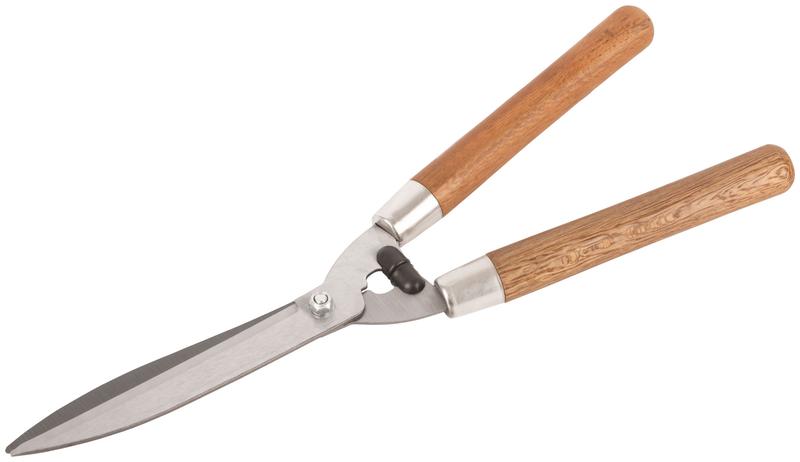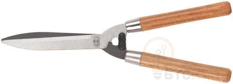 Лезвие 190 мм. Для обрезания кустов, цветов, живой изгороди, молодых побегов деревьев. Материал: стальные лезвия, деревянные ручки. Упаковка: п/э пакет.