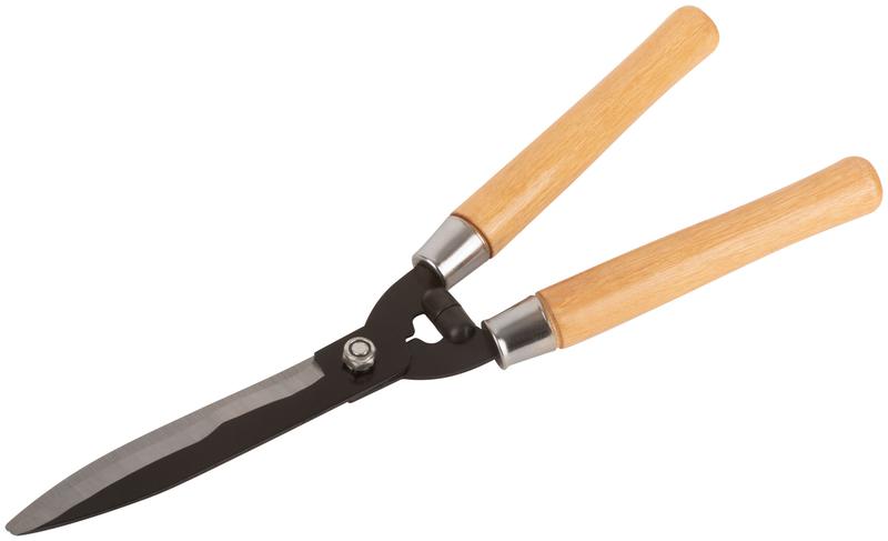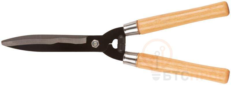 Лезвие 190 мм. С волнистыми лезвиями. Для обрезания кустов, цветов, живой изгороди, молодых побегов деревьев. Материал: черненые лезвия из инструментальной стали, деревянные ручки.