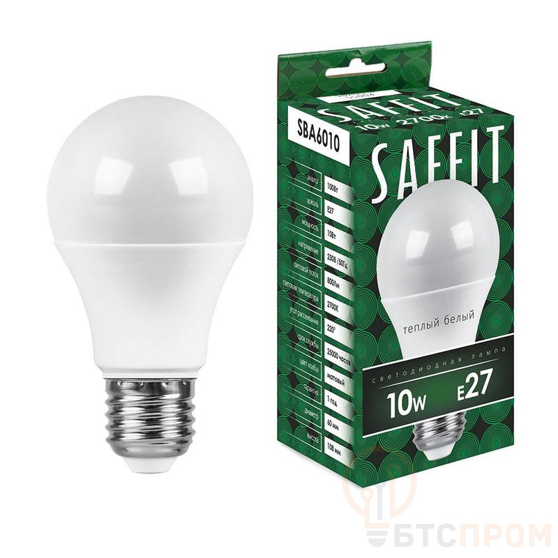 Светодиодная лампа SBA6010 SAFFIT — это современное и энергоэффективное решение для основного освещения в жилых и коммерческих помещениях. Благодаря цоколю E27 лампа легко устанавливается в большинство стандартных светильников и люстр.