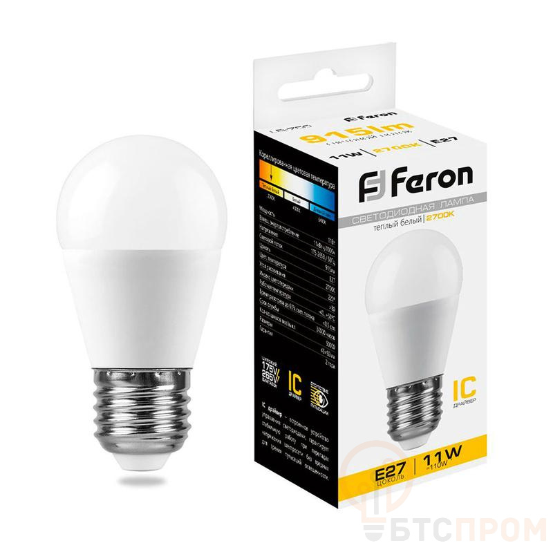Светодиодная лампа Feron LB-750 — это современное и энергоэффективное решение для основного и декоративного освещения. Модель мощностью 11 Вт обеспечивает яркий и комфортный свет, полностью заменяя традиционную лампу накаливания мощностью 90 Вт. Благодаря стандартному цоколю E27 лампа легко устанавливается в большинство бытовых светильников, бра и люстр.