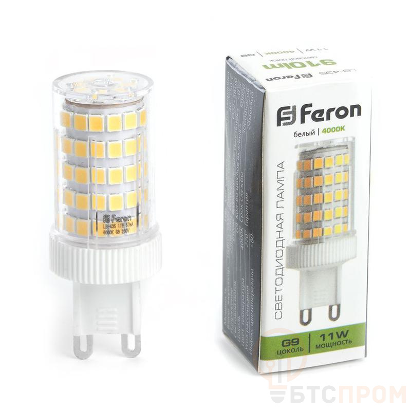 Лампа светодиодная FERON LB-435, JCD9 (капсульная), 11W 175-265V G9 4000К (белый), рассеиватель прозрачный 910Lm, угол рассеивания 270°, 58*22мм