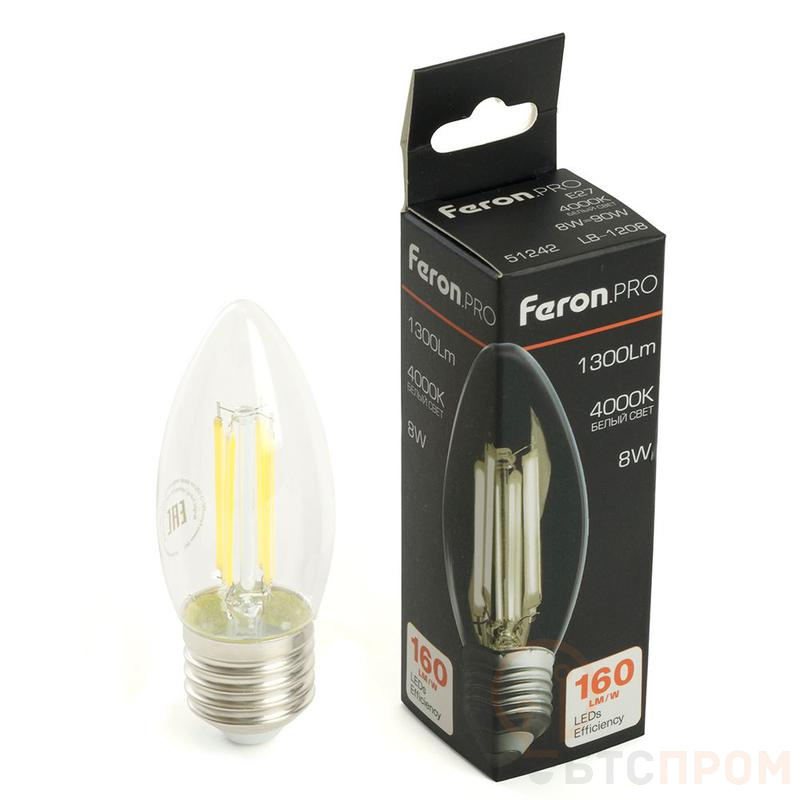 Лампа светодиодная 1300лм 8Вт 175-265В E27 4000К C35 прозрачн. LB-1208 FERON 51242 фото в каталоге от BTSprom.by