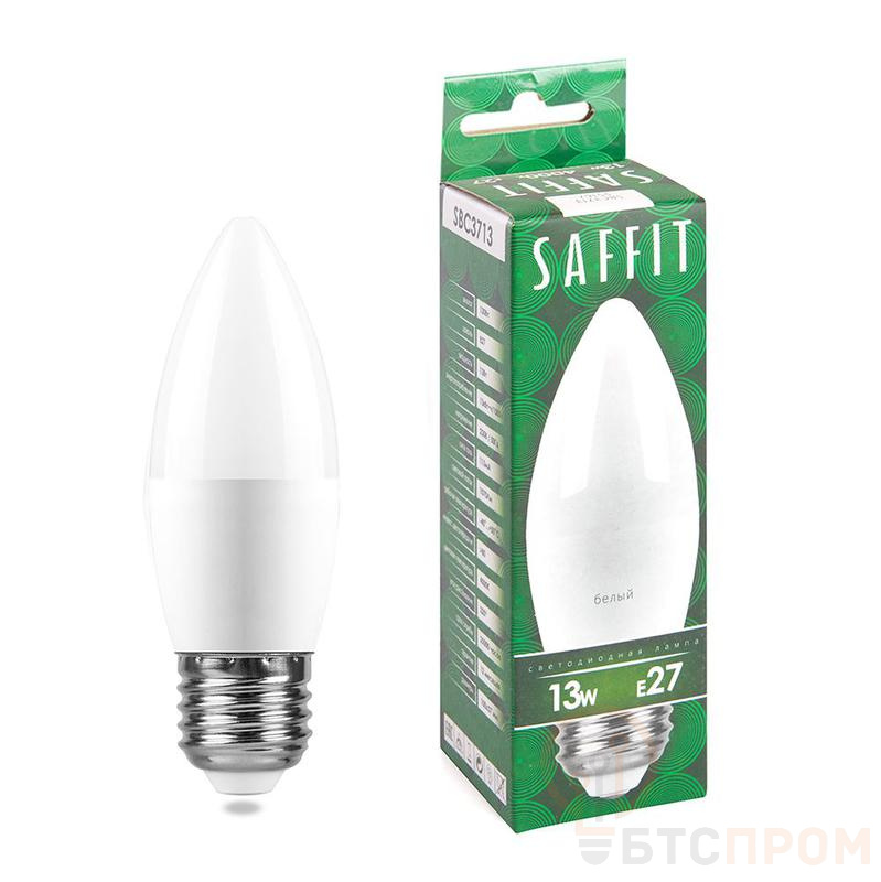 Лампа светодиодная SAFFIT SBC3713, C37 (свеча), 22W 230V E27 4000К (белый), рассеиватель матовый белый, 1070Lm, угол рассеивания 220°, 107*37мм