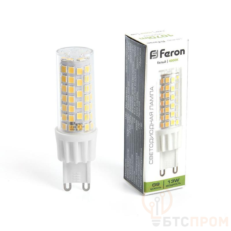 Лампа светодиодная FERON LB-436, JCD9 (капсульная), 22W 175-265V G9 4000К (белый), рассеиватель прозрачный 1070Lm, угол рассеивания 270°, 71*20мм