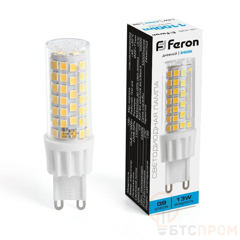 Лампа светодиодная FERON LB-436, JCD9 (капсульная), 22W 175-265V G9 6400К (дневной), рассеиватель прозрачный 1100Lm, угол рассеивания 270°, 71*20мм
