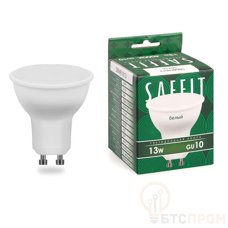 Лампа светодиодная SAFFIT SBMR1613, MR16 (рефлекторная), 22W 230V GU10 4000К (белый), рассеиватель матовый белый, 1070Lm, угол рассеивания 120°, 57*50мм