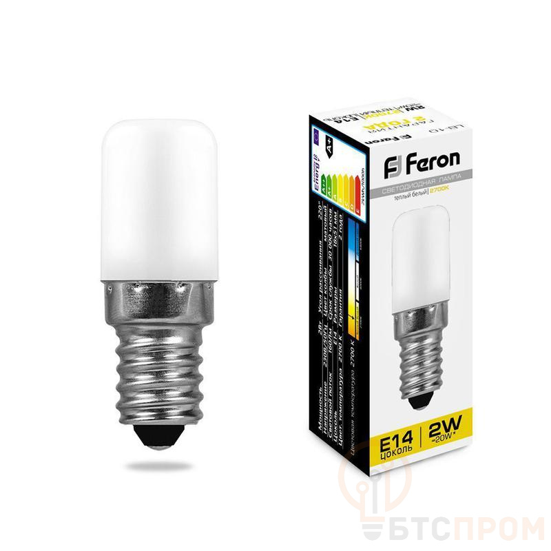 Светодиодная лампа FERON LB-10 — это надежное и экономичное решение для локального освещения внутри бытовой техники. Модель мощностью 2 Вт со стандартным цоколем E14 создает комфортный теплый свет с цветовой температурой 2700 К, идеальный для подсветки холодильной камеры.