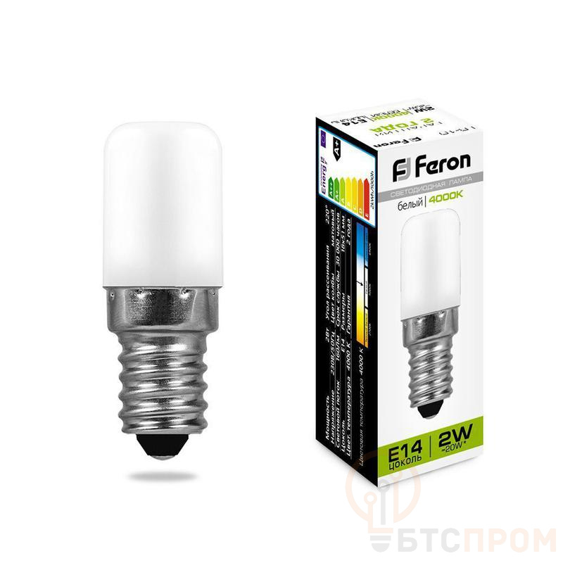 Лампа светодиодная FERON LB-10, для холодильника (капсульная), 2W 230V E14 4000К (белый), рассеиватель матовый белый, 160Lm, угол рассеивания 220°, 51*18мм
