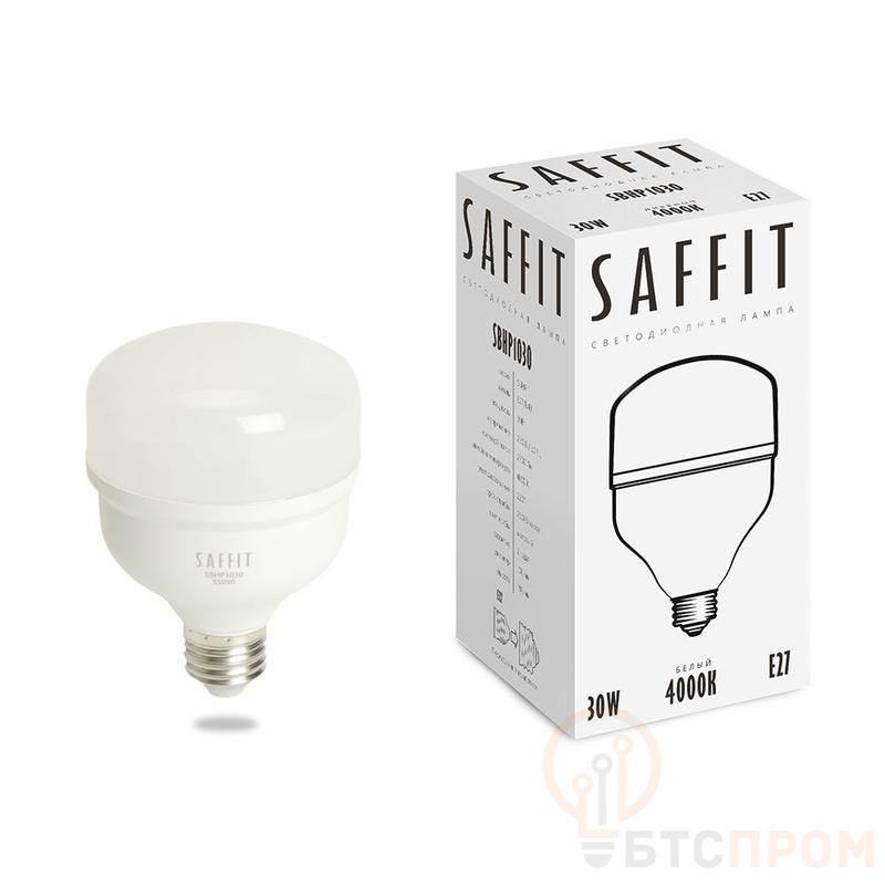 Лампа светодиодная SAFFIT SBHP1030, колба (промышленная), 30W 230V E27 4000К (белый), рассеиватель матовый белый, 2700Lm, угол рассеивания 220°, 120*80мм