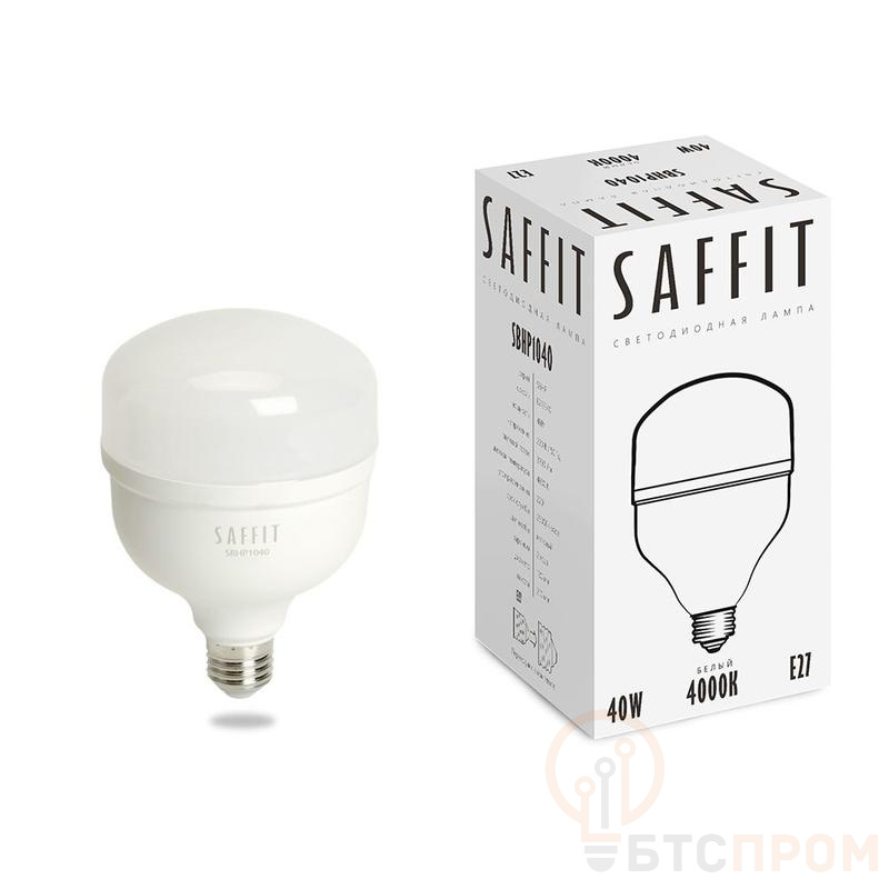 Лампа светодиодная SAFFIT SBHP1040, колба (промышленная), 40W 230V E27 4000К (белый), рассеиватель матовый белый, 3700Lm, угол рассеивания 220°, 152*100мм