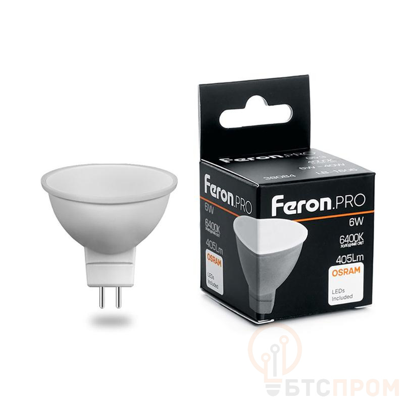 Лампа светодиодная FERON LB-1606, MR16 (рефлекторная), 6W 175-265V G5.3 6400К (дневной), рассеиватель матовый белый, 405Lm, угол рассеивания 120°, 52*50мм