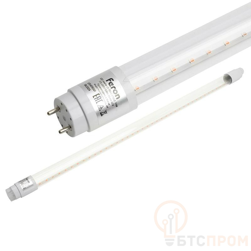 Лампа для растений FERON LB-7063, T8 (фитолампа), 11W 175-265V G13 (красно-синий), рассеиватель прозрачный угол рассеивания 220°, корпус стекло, 600*26мм