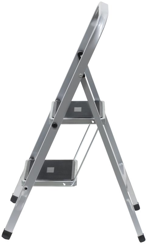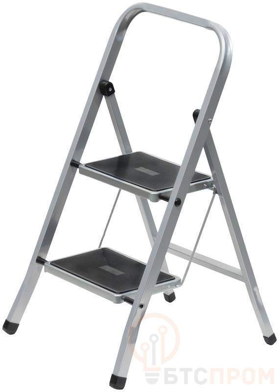 Широкие ступени с пластиковыми ковриками. Размер ступеней 30 х 20 см. Нагрузка допустимая 120 кг. Материал: сталь.