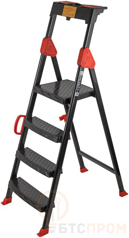 • Усиленные пластиковые ступени и верхнюю площадку можно снимать, что помогает в хранении стремянки.