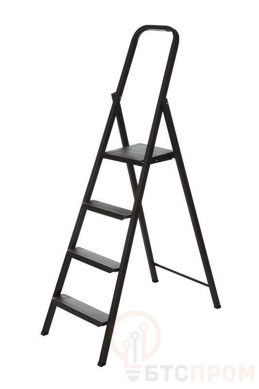 Лестница-стремянка FIT РОС ‘’Компакт’’ рассчитана на нагрузку в 120 кг. Стальная рама с прямоугольным сечением обладает высокой прочностью. Лестница покрыта полным антикоррозионным покрытием. Пластиковые накладки на ножках предотвращают повреждения напольных покрытий. Ступени и рабочая площадка имеют противоскользящий рифленый профиль. Широкие ступени, усиленный сварной корпус и высокая дуга повышают безопасность работы. В сложенном состоянии лестницы не занимают много места.