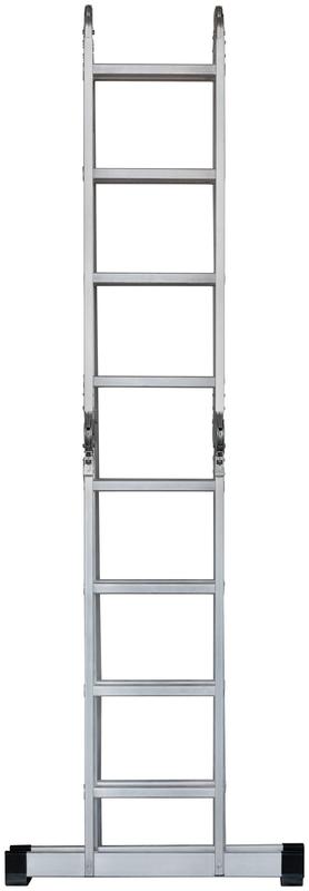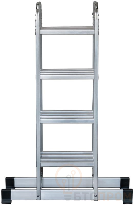 Алюминиевая лестница-трансформер FIT РОС рассчитана на нагрузку в 150 кг. Конструкция позволяет использовать изделие как стремянку, приставную лестницу или помост-платформу. Противоскользящие основания обеспечивают устойчивость лестницы во всех положениях. В сложенном состоянии лестница удобна для хранения и транспортировки.