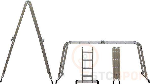 Алюминиевая лестница-трансформер FIT РОС рассчитана на нагрузку в 150 кг. Конструкция позволяет использовать изделие как стремянку, приставную лестницу или помост-платформу. Противоскользящие основания обеспечивают устойчивость лестницы во всех положениях. В сложенном состоянии лестница удобна для хранения и транспортировки.