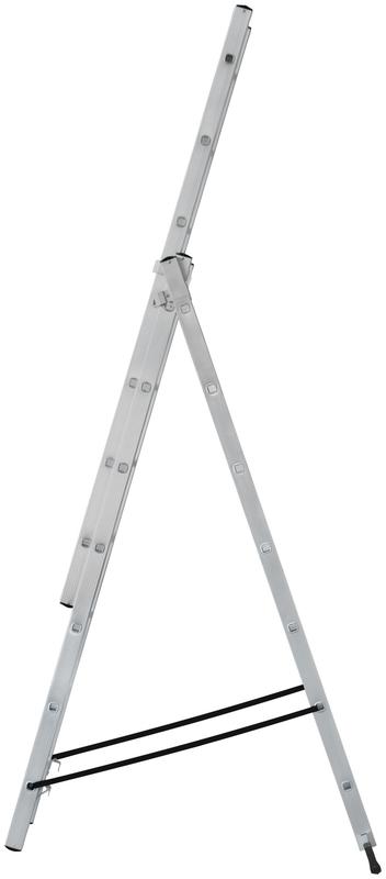 Трехсекционная алюминиевая лестница FIT РОС рассчитана на нагрузку в 150 кг, подходит для бытового и промышленного применения. Рабочая площадка наверху отсутствует. Модель обеспечена следующими элементами безопасности: ножки закрыты противоскользящими накладками, ременная траверса фиксирует расхождение, надёжный стопорный рычаг держит соединяемые элементы. Двухстороннее расположение ступеней позволяет выполнять подъём в любом направлении. Секции можно использовать отдельно, а также собирать их в различных вариантах, что обеспечивает широкий диапазон применения лестницы.