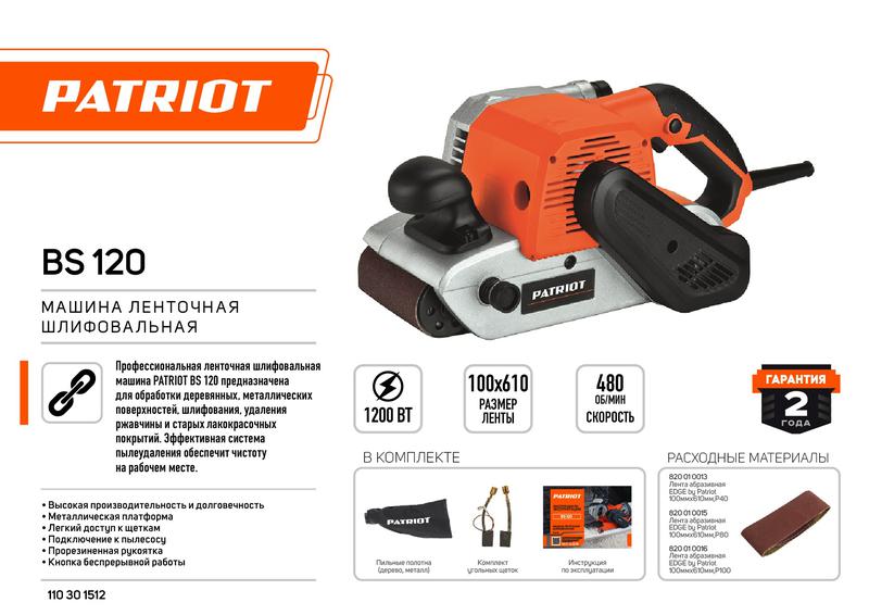 Машина шлифовальная ленточная ЛШМ BS 120 метал. корпус 1200Вт лента 100х610мм PATRIOT 110301512 фото в каталоге от BTSprom.by