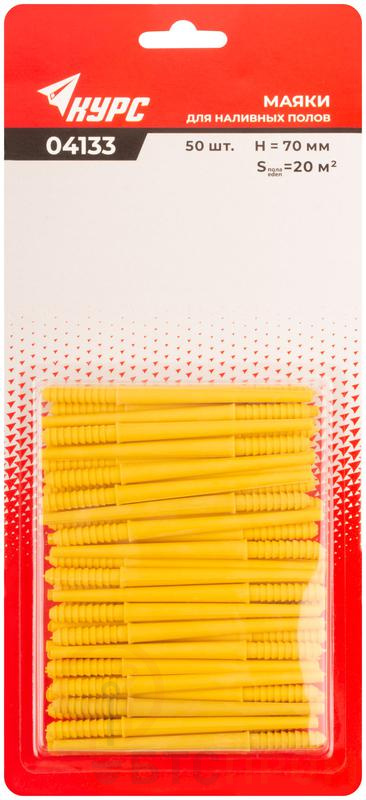 Маяки для наливных полов КУРС РОС предназначены для быстрого и точного определения уровня выравнивания наливного пола площадью до 20 кв.м. Для установки потребуется дрель или перфоратор и лазерный уровень для разметки. Маяки изготовлены из термопластичного эластомера, что обеспечивает их прочность и износостойкость. В комплекте 50 шт.