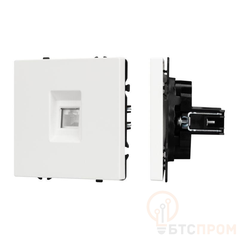 Корпус выполнен из прочного белого пластика. Конструкция использует популярный тип заделки T568A/B с защитными шторками и экранированием (FTP), что гарантирует стабильное соединение и защиту от электромагнитных помех. Механизм предназначен для скрытого монтажа в стандартную монтажную коробку.