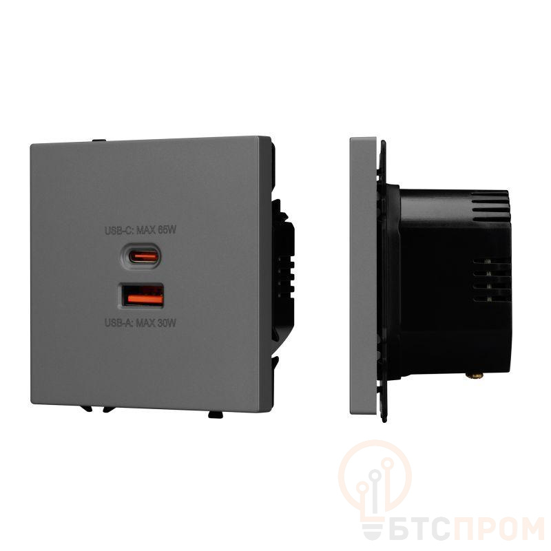 Устройство имеет классическую рамку грифельного цвета и монтируется в стандартный подрозетник. Оно идеально подходит для установки в гостиных, офисах, гостиничных номерах и любых других пространствах, где требуется удобное и быстрое пополнение заряда аккумуляторов нескольких устройств одновременно. Механизм сочетает в себе надежность европейского стандарта электророзетки и передовые технологии зарядки.