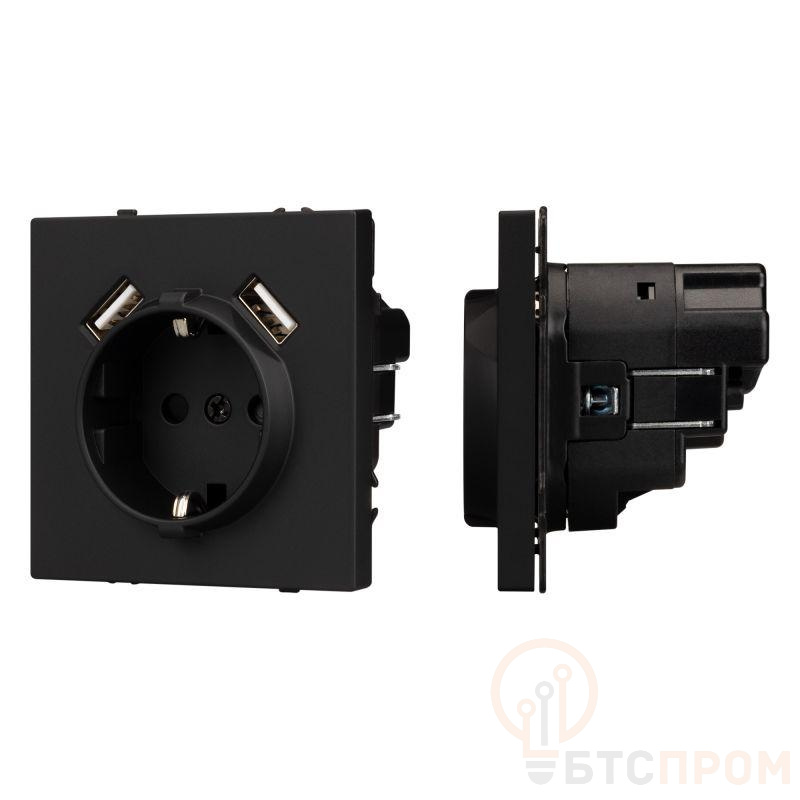 Элегантный черный корпус (цвет BK) позволяет гармонично вписать устройство в любой современный интерьер. Идеальная сфера применения — жилые и офисные помещения, гостиницы, общественные зоны, где требуется удобное и безопасное подключение электроники. Механизм монтируется в стандартный подрозетник, обеспечивая аккуратный и функциональный результат.