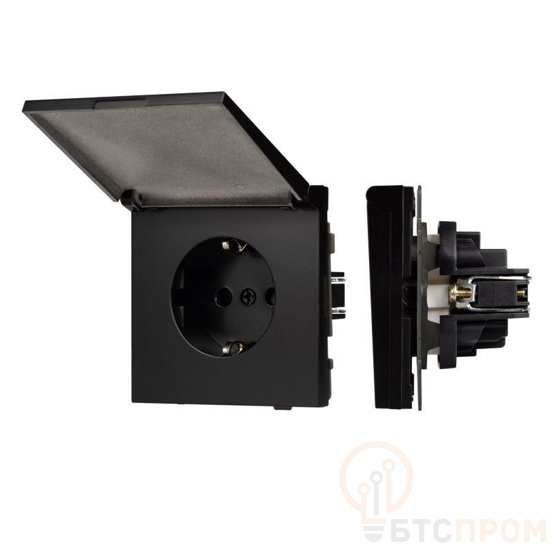 Изделие выполнено в классическом черном цвете (BK) и предназначено для скрытого монтажа в стандартные монтажные коробки. Прочная конструкция и качественные материалы гарантируют долговечность и стабильность электрического контакта. Этот механизм является оптимальным выбором для современных жилых и коммерческих помещений, где сочетаются требования к дизайну, функциональности и безопасности.