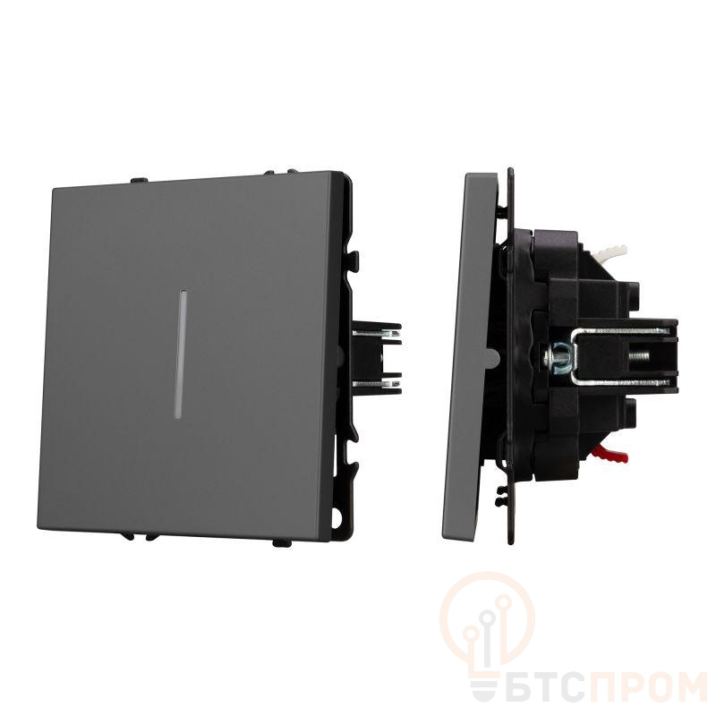 Ключевой особенностью является встроенная подсветка, которая помогает легко найти выключатель в темноте. Стильный графитовый (GR) цвет корпуса отлично впишется в современный интерьер. Механизм предназначен для установки в стандартные монтажные коробки и совместим с большинством серий рамок. Идеально подходит для организации основного освещения в квартирах, офисах, гостиницах и других объектах, где требуется простое и удобное управление светом из одной точки.