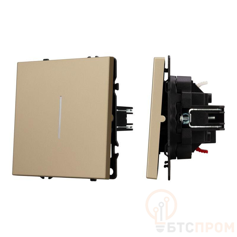 <p>Ключевая особенность — встроенная светодиодная подсветка, которая облегчает поиск выключателя в темноте. Золотистое декоративное покрытие GD придает механизму эстетичный и стильный вид. Модель предназначена для установки в стандартные монтажные коробки и совместима с большинством серий рамок.</p>