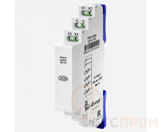 Модуль диодный МД-1-4А УХЛ4 от производителя «Меандр» (артикул A8302-16930467) — это надежное силовое полупроводниковое устройство, предназначенное для выпрямления переменного тока в трехфазных цепях. Модуль собран по схеме Ларионова и рассчитан на средний выпрямленный ток 1 А с максимальным обратным напряжением 400 В на диод.