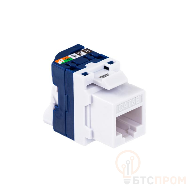 Ключевой особенностью данной модели является возможность установки без специализированного инструмента — провод фиксируется с помощью встроенного механизма Punch-Down, что значительно ускоряет процесс монтажа и не требует дополнительных затрат. Корпус модуля выполнен в классическом белом цвете.