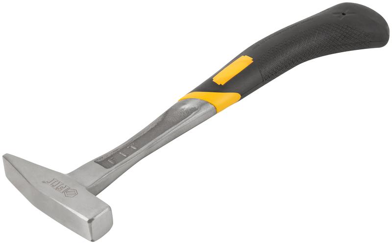 Цельнометаллический. Материал: кованая инструментальная сталь, пластиковая прорезиненная ручка.