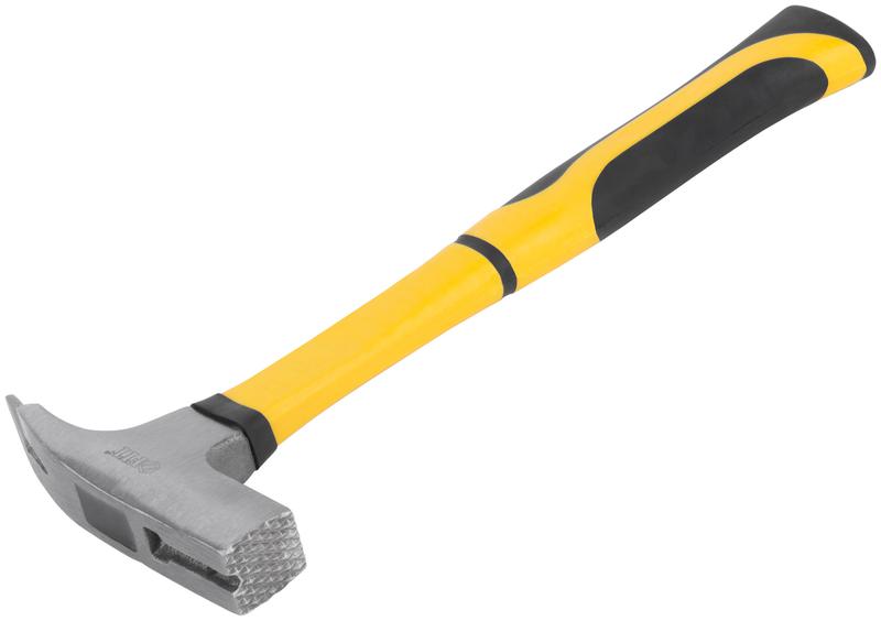 Молоток кровельщика FIT IT предназначен для работы с кровлей из листового металла. Головка изготовлена из кованой закаленной инструментальной стали марки #45 и выдерживает высокие ударные нагрузки. Глубина закалки бойка 4–5 мм обеспечивает высокую износостойкость. Рельефный боек предотвращает соскальзывание с гвоздя во время удара. Выемка с магнитом способствует повышению эффективности работы. Широкая эргономичная рукоятка имеет противоскользящие резиновые вставки. Фибергласовый сердечник упрочняет конструкцию рукоятки. Прочное соединение головки с рукояткой обеспечивается полимерным клеем.