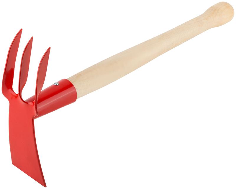 Мотыжка комбинированная, 3 витых зуба. Профиль – трапеция. Материал: углеродистая сталь (СТ3), деревянная ручка.