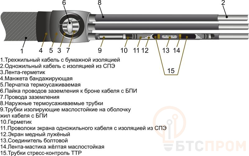 Муфта кабельная соединительная 35кВ 3СПТп-35 (120-240) М производства "Михнево" (арт. 008039) предназначена для надежного и герметичного соединения силовых кабелей с бумажно-пропитанной изоляцией на напряжение 35 кВ.