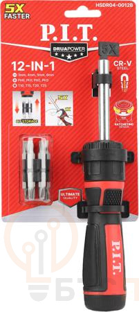 Трещотка обеспечивает быструю работу в стесненных условиях без перехвата рукоятки. Биты изготовлены из хромованадиевой стали, что гарантирует высокую прочность и износостойкость. Магнитный держатель надежно фиксирует крепеж.